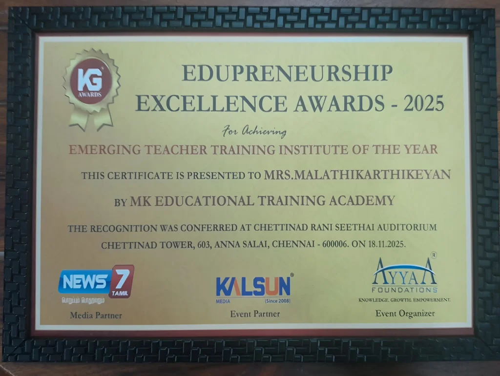 EXCELLENT Based on 134 reviews Posted on Vivega Vilasini27/01/2026Trustindex verifies that the original source of the review is Google. MK academy is a wonderful place learning and overall development. Malathi ma'am given great guidance and supports every trainee with care. The training is easy and very useful for future teachers.Posted on mohana priya23/01/2026Trustindex verifies that the original source of the review is Google. I really enjoy this academy I had more knowledge for about teaching and who is a teacher i really thank for my mam Mrs. Malathy to identify my for myself thank you mamPosted on Rajathi Karthikeyan21/01/2026Trustindex verifies that the original source of the review is Google. Very excellent and satisfied coaching and teaching... Keep rocking...Posted on karthi keyan21/01/2026Trustindex verifies that the original source of the review is Google. Posted on Sathyavani Anbu selvan19/01/2026Trustindex verifies that the original source of the review is Google. Posted on Naga Lakshmi13/01/2026Trustindex verifies that the original source of the review is Google. I attended montessori orientation session.This session is conducted by Malathi mam.It is very well cleared explanation. It is good platform for every women Thank you mamPosted on Abirami. K02/01/2026Trustindex verifies that the original source of the review is Google. Posted on siva ranjani suriyan29/12/2025Trustindex verifies that the original source of the review is Google. The Montessori Orientation Program conducted by Malathi Ma'am meeting was informative and engaging. The Montessori philosophy and course objectives were clearly explained. Malathi ma'am is very supportive and encouraging.Posted on Bhagyalakshmi Srinivasan27/12/2025Trustindex verifies that the original source of the review is Google. Posted on Sharmila Srinivasan23/12/2025Trustindex verifies that the original source of the review is Google. This orientation was very informative and well organized. The trainer explained the course details clearly, including objectives, structure, and expectations. The session was easy to understand and interactive, which made it engaging even online. It helped me feel confident and excited to begin the Montessori training.Thank u so much for detail explaination